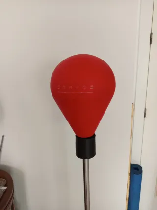 Pera de boxeo de la marca DOMYOS, color rojo. - Base redonda y pesada para mayor estabilidad. - Poste ajustable en altura. - Material resistente para entrenamientos.