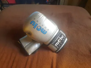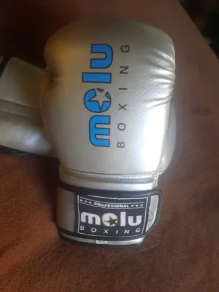 Par de guantes de boxeo profesionales de la marca Molu. - Color plateado. - Cierre de velcro. - Peso: 14 oz.