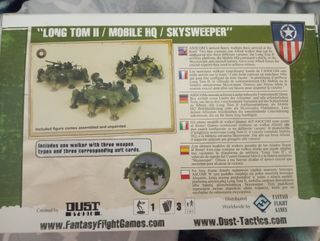 Miniatura Long Tom II / Mobile HQ / Skysweeper para el juego de mesa Dust Tactics. Representa un vehículo de apoyo pesado. La caja está abierta pero no se ha usado nunca. - Incluye un walker con tres tipos de armas. - Incluye tres cartas de unidad correspondientes.
