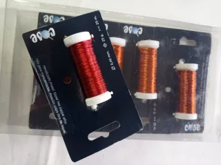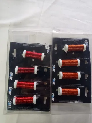 Conjunto de hilos de cobre para manualidades. - Diámetro: 0,40 mm - Peso: 25 g - Longitud: 25 m - Material: Aleación de cobre libre de níquel Se vende el conjunto