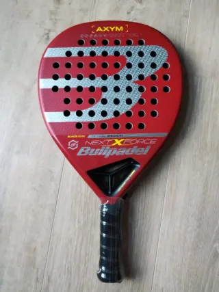 Pala de pádel Bullpadel modelo AXYM. - Composición: Grafito/Multieva. - Peso: 365-375 gramos. - Grosor del perfil: 38 mm. - Balance: Medio. - Forma: Lágrima. - Nivel: Intensivo.