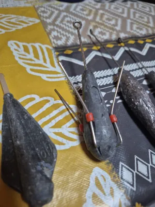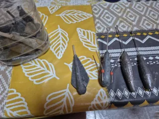 Lote de plomos para pesca de diferentes tamaños y formas. Ideales para diversas modalidades de pesca. - Plomos de plomo. - Variedad de pesos y diseños.