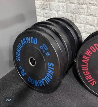 Se venden 6 discos de peso de la marca Singularwood, cada uno de 20 kg. - Marca: Singularwood - Peso por disco: 20 kg - Cantidad: 6 unidades