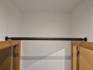 Barra de dominadas ajustable para colocar entre paredes o marcos de puerta. Se instala mediante sistema de presión y bloqueo de seguridad. -se extiende 95cm Tiene señales de uso: como se aprecia en las fotos, parte de la pintura está desgastada y en algunas zonas hay pequeños desconchones superficiales. Sin embargo, estructuralmente está en muy buen estado y es muy resistente. Ha soportado bastante peso sin aflojarse ni moverse. Cuenta con sistema de bloqueo de seguridad (marcado azul/rojo) para fijarla correctamente una vez ajustada. -Sin embalaje original. -Recogida.