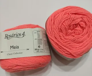 Ovillo de lana Rosarios 4, modelo Meia, de la colección Classic. - Composición: 70% Lana Merino, 30% Poli - Peso: 50 g (1,75 oz). - Longitud: 185m (202yd). - Color: Coral neón