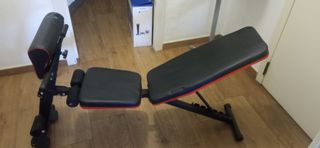 Banco de pesas / Banco multifunción Tectake – Buen estado Vendo banco de musculación Tectake, usado pero en buen estado, firme y cómodo. Ideal para entrenar pecho, hombros, abdominales y piernas en casa. ✔️ Respaldo acolchado ✔️ Parte inferior con rulo para piernas ✔️ Perfecto para rutinas de fuerza Lo vendo porque ya no lo uso. Entrega en mano y podés venir a verlo sin compromiso.