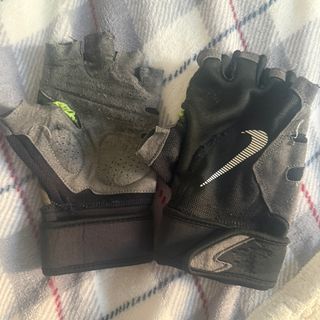 Guantes deportivos Nike para gym y levantamiento de pesas. Diseñados para ofrecer agarre y protección. - Marca: Nike - Tipo: Guantes deportivos - Uso: Gym, pesas, entrenamiento - Diseño: Sin dedos - Material: Combinación de tela y cuero sintético Por favor leer bien, atención! Solo efectivo, sin devoluciones ni garantía Se retira a domicilio No se hacen envíos