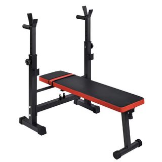 Banco de entrenamiento HOMCOM con diseño ajustable. - Tapicería negra con ribete rojo. - Estructura metálica.