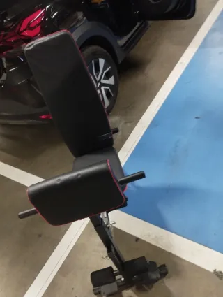 Banco de pesas KETTLER SPORT en color rojo. - Estructura metálica. - Asiento y respaldo acolchados. - vendo 4 pesas de 3kf cada una Le falta el gancho donde se gradúa el respaldo. Yo uso un tornillo.