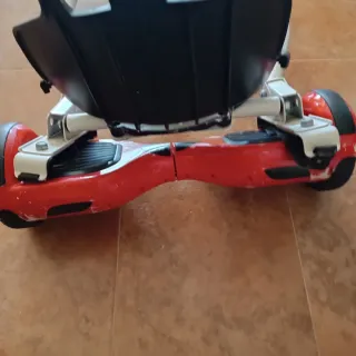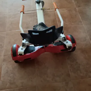 Se vende hoverboard con accesorio de asiento y su cargador. - Hoverboard con ruedas rojas y negras. - Asiento negro con manillar naranja. - Incluye cargador. Precio económico lo que costó el accesorio . No envío recojer por peso.