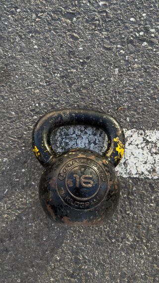 Pesa rusa o kettlebell de . Ideal para entrenamientos de fuerza y acondicionamiento físico. - Peso: 8kg 15 euros 10kg 10 euros 12kg 20 euros 16kg 25 euros - Material: Hierro fundido. - Acabado: Negro con detalles oxidados. BBC