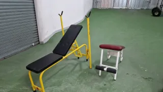 Se vende banco de pesas con barra y discos. - Incluye barra. - 20 kg en discos de pesas. Negociable. La venta es en pack, no en unidades.