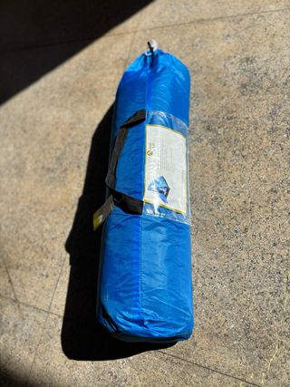 Tienda de campaña Neak Peak modelo Tienda Natura. - Color: Azul. - Capacidad: 3 personas. - Material del suelo: 10x10D. - Peso: 2.6 kgs. - Varillas de fibra de vidrio: 7.9 mm x 2 uds. - Piquetas: 13 uds. - Cuerdas: 4 uds.