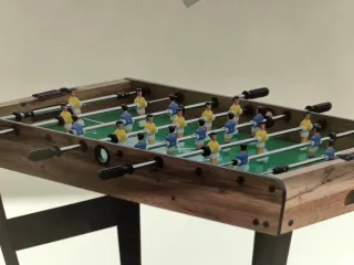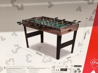 A estrenar. Sin desprecintar. Futbolín de tamaño infantil, perfecto para los más pequeños. - Campo de juego verde. - Jugadores con camisetas amarillas y azules. - Barras metálicas con mangos negros. Medidas en la foto. Por el tamaño y peso no puedo enviarlo. Precio no negociable