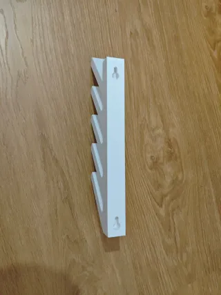 Práctico soporte de pared para foils. Cada stand tiene 45°, profundidad de 8cm para meter el foil - Diseño moderno y funcional. - Fácil instalación en la pared. - Tamaño 23.5x2.5x9cm - Se incluyen dos piezas impresas en 3D, material PETG - Cada pieza pesa unos 145gr