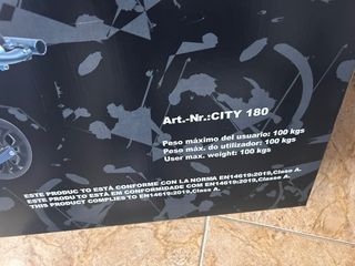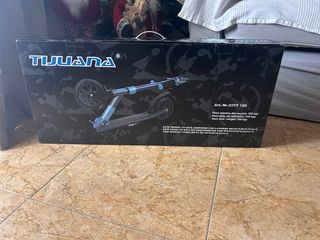 Patinete marca Tijuana, modelo City 180. - Color azul y negro. - Peso máximo de usuario: 100 kg. - Cumple con la norma EN14619:2019, Clase A.