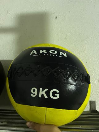 Wallball de la marca Akon Fitness con un peso de 9 kg. Ideal para entrenamientos funcionales. - Color: Negro y amarillo. - Peso: 9 kg.