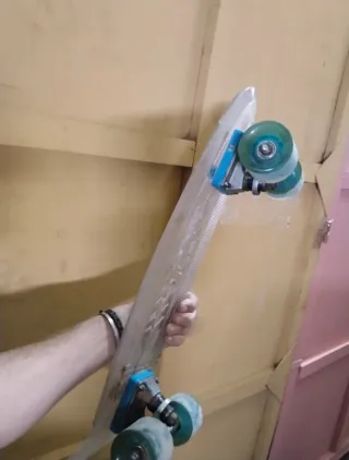 Skateboard transparente - Tabla de material acrílico. - Ejes y ruedas de patinaje. - Diseño moderno y llamativo.