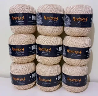 Vendo lote de 9 ovillos de perle Rosarios4 del grosor 20. Color 504 (beige oscuro). Cada ovillo pesa 100g y tiene unos 1130 m. Compuesto por 100% algodón mercerizado. Para agujas de 1,00 a 1,25 mm. Todos los ovillos nuevos y del mismo lote. No negociable. Posibilidad de venderlos por unidades.