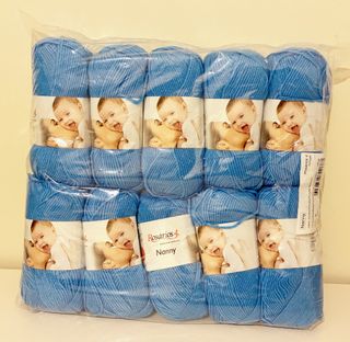 10 madejas de lana Nanny de Rosarios 4 color 86 (azul). Cada madeja pesa 100g y tiene unos 250m. Todas las madejas nuevas y del mismo lote. Compuestas por 100% acrílico premium anti bolitas. Para agujas de tricot de 4mm y ganchillo de 4 mm. No negociable