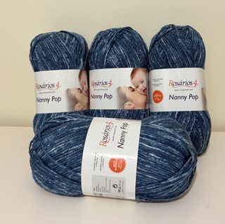 Lote de 4 madejas de lana Nanny Pop de Rosarios4 color 9. Cada madeja pesa 100g y tiene unos 250m. Para agujas de 4mm. 100% acrílico. Todas las madejas nuevas y del mismo lote. Es una lana antipelling, lo que significa que siguiendo las instrucciones de lavado de la etiqueta, no hace bolitas. Perfecta para bebés y niños. No negociable