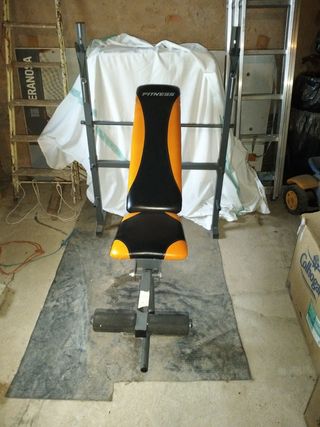 banco de pesas multiusos marca fitness, con 4 niveles de inclinación ideal para empezar a entrenar en casa, ya que permite hacer los siguientes ejercicios: - press banca plano - press banca inclinado con 3 alturas distintas - extensión de cuadriceps - curl de biceps - culaquier ejercicio de banco con mancuernas