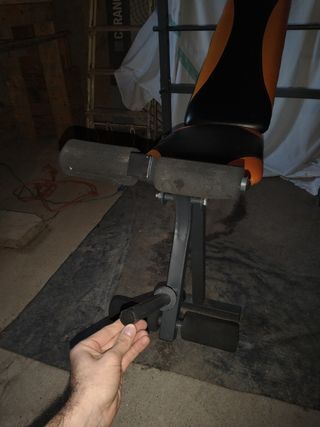 Banco de musculación y abdominales Domyos PA 600. - Diseño en color negro. - Incorpora rodillos para mayor comodidad. - Estructura robusta. Perfecto estado para entrenar en casa, es de Decathlon por lo que tiene garantía de estructura de por vida, se puede ver y probar sin compromiso. Pesas Deporte Musculación Gym Nike Reebok Adidas Puma Fútbol Humbro