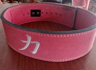 Cinturón de levantamiento de pesas Strength Shop de color rosa. Está en buenas condiciones. Talla L. - Cierre palanca - Material de cuero sintético. - Hebilla de cierre metálico. - Diseño discreto.