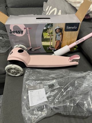 Patinete infantil de la marca Lionelo, modelo Jessy, en color rosa. Ideal para los más pequeños. Solo sacado de la caja para las fotos - Ruedas con luces LED. - Manillar ajustable. - Peso máximo soportado: 50 kg.