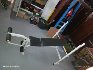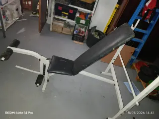 Fantástico banco de cuádriceps en muy buen estado, es ideal para fisioterapia, rehabilitación y fenomenal para el fortalecimiento de las piernas, se puede reclinar para realizar los ejercicios tumbado boca arriba o boca abajo. - Perfecto para ejercicios de fortalecimiento de piernas. - Incluye juego de pesa - Estructura resistente y estable. - Diseño cómodo y acolchado.