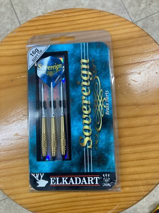 Set de tres dardos Sovereign de 16 gramos con punta blanda. - Marca: Elkdart - Material: Latón - Tipo de punta: Soft tip - Peso: 16g
