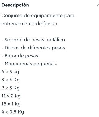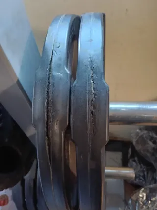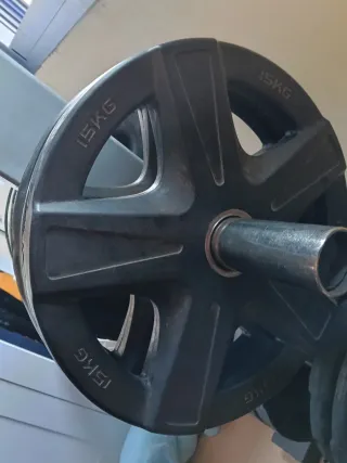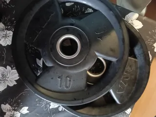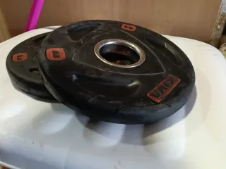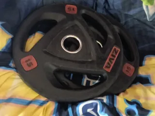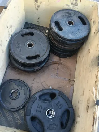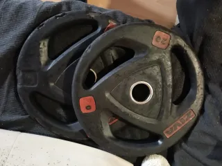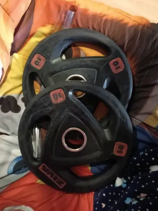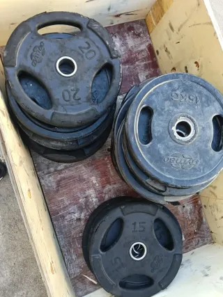 2 Discos de 10k a 17€ unidad 10 discos de 2k a 6€ unidad 8 discos de 1k a 3€ unidad 6 discos de 0,5k a 1,5€ unidad 3 mancuernas con cierres a 12 € unidad 1 barra de pesas sin cierres 30€ Por un poco más te llevas el banco de pesas. Cualquier duda preguntar. Acepto cambio por GPS Garmin, o por productos deportivos. - Mancuernas con discos ajustables. - Discos de peso de diferentes tamaños.
