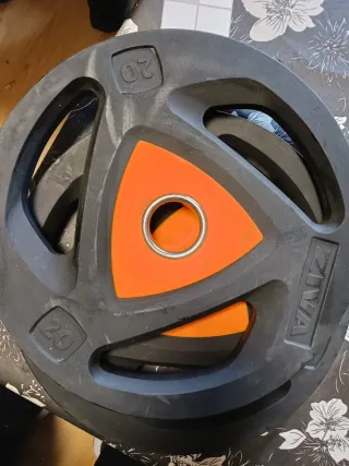 Se venden dos discos de pesas Ziva de 20kg cada uno. Ideales para entrenamiento de fuerza. - Marca: Ziva - Peso: 20 kg por disco - Material: Goma y metal - Diseño con agarres