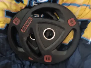 Se venden discos de pesas para gimnasio, ideales para complementar tu entrenamiento. - Discos de 15 kg