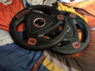 Se venden dos discos de pesas ZIVA de 10 kg cada uno. Ideales para complementar tu equipo de gimnasio. - Marca: ZIVA - Peso: 10 kg por disco - Cantidad: 2 unidades