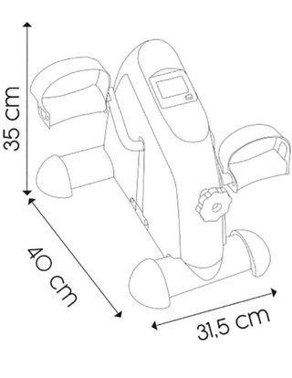 Keboo Pedales Estáticos para Brazos y Piernas Serie 300 con Pantalla LCD 40x35x31,5 cm Esta pedalina es ideal para perder peso desde tu casa. Incorpora pedales con sujeción para que sea más cómodo el ejercicio. Cuenta con un volante de inercia de 1,5 kg y dispositivo electrónico con multifunción. Medidas: 40 x 35 x 31,5 cm. - Peso: 4,8 Kg. - Peso máximo soportado: 130 Kg. - Volante de inercia: 1,5 Kg Magnético. - Características del computador: Velocidad, distancia, tiempo y calorías. - Pedales: De plástico y antideslizantes. - Color: Negro. - Material: ABS, polietileno y tubo de acero.
