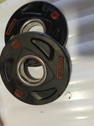 Se venden dos discos de pesas ZIVA de 1.25 kg cada uno. - Marca: ZIVA - Peso: 1.25 kg por disco - Material: Goma y acero