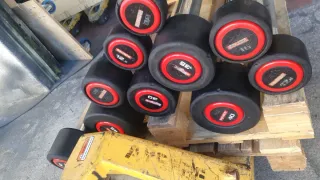 Lote de discos de pesas para equipar tu gimnasio en casa o profesional. Son de goma y acero. - Discos de 15 kg