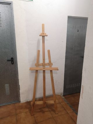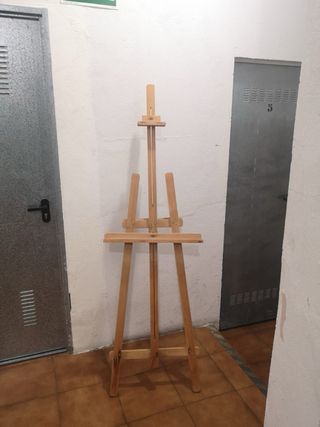 Caballete de madera para pintar o colocar decoración. Mide 1,70m y se puede regular el soporte de base para colocar el lienzo o lo que se desee. Es un caballete clasico, pero en mi caso lo utilicé para colocar el seating plan (distribución de invitados) de las mesas de mi boda. Este es el único uso que tiene, está en perfecto estado. Es preferible venta en persona por el tamaño y peso, pero no tengo problema en hacer envios 😊