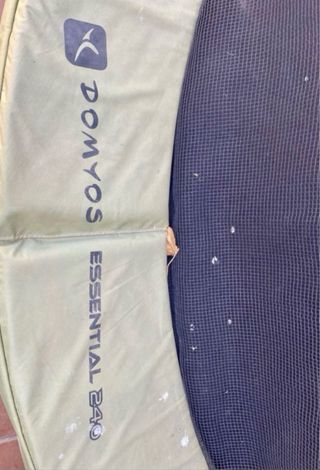 Cama elastica Decathlon, 240 cm de diametro, soporta 80 kg de peso, decolorada por el sol pero en perfecto estado. No se hacen envios
