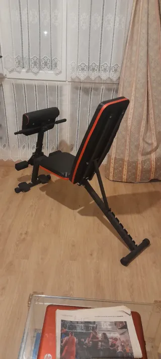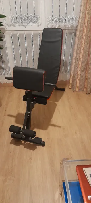 •Banco de pesas con 2 posiciones • Barra larga para press banca 10kg • 2 barras pequeñas para bíceps • Barra de dominadas para colocar en puerta • 2 Discos de 10 kg • 2 Discos de 5 kg • 4 Discos de 2,5 kg • 4 Discos de 1,25 kg Total: 55kgs • Cierres para las barras Esta todo impoluto, se vende por falta de espacio y de uso A recoger, no envío debido al peso