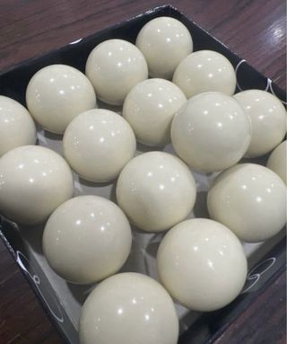 Set de 16 bolas blancas para futbolín. Son pesadas y de buena calidad. - Color: Blanco - Material: Baquelita. - Cantidad: 16 unidades - Peso 36 gramos - Diámetro 34 mm - Control y precisión en el juego. - Son las utilizadas en los campeonatos de futbolín. - Precio 1,50€ unidad - Este producto nunca se ha usado.