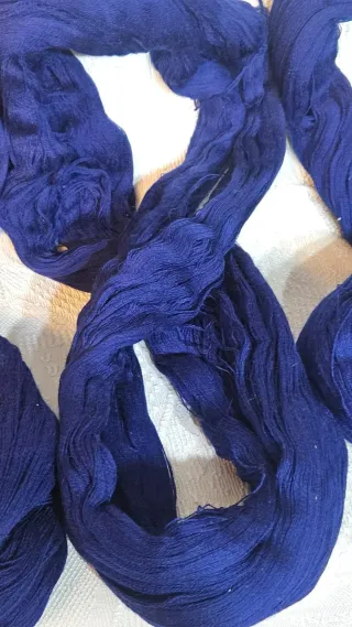 Lote de lana de Francia, ideal para labores de ganchillo y otras manualidades. - Peso total: 360 gramos. - Color: Azul oscuro. - Textura suave y manejable.