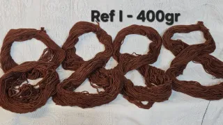 Lote de 4 madejas de lana artesanal de color marrón, ideal para labores de ganchillo o tejido. - Cada madeja pesa aproximadamente 100gr, sumando un total de 400gr. - Lana de origen francés. - Textura suave y natural.