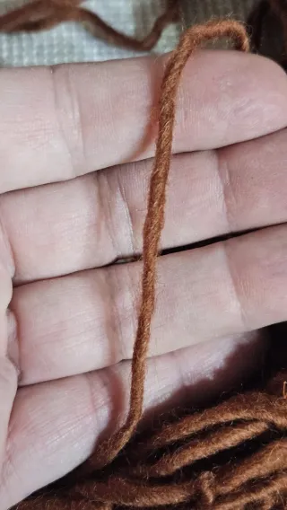 Lote de dos ovillos de lana artesana, ideal para tus proyectos de ganchillo o tejido. - Color marrón rojizo. - Peso total aproximado: 200 gramos.