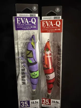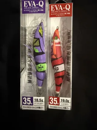 Se venden dos señuelos de pesca DUEL EVA-Q, edición limitada de Evangelion.Dispongo de mas unidades - Modelo: DUEL ez-Q® Collabo Model. - Color: Púrpura ( 初号機カラー). - Peso: 18.5g. - Modelo: DUEL MAG® Q Collabo Model. - Color: Rojo (2号機カラー). - Peso: 19.0g. - Características: Tungsten x Magneto para el centro de gravedad y aletas Patapata.