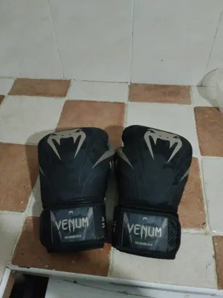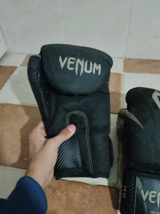 Par de guantes de boxeo Venum en color negro con detalles en camuflaje y blanco. Ideales para entrenamiento y competición. - Marca: Venum - Peso: 14 oz - Diseño: Camuflaje y blanco - Cierre de velcro