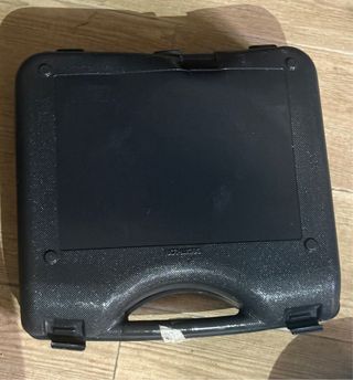 Maletín negro para guardar pesas y contienen pesas. Tiene un asa para facilitar su transporte
