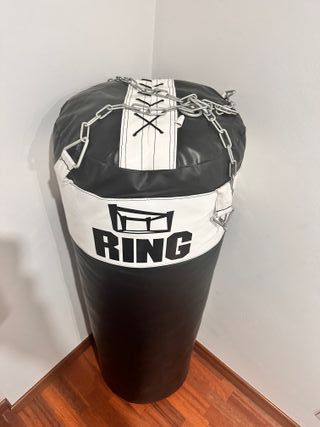 Altura del saco de boxeo: 135 cm Diámetro: 45 cm Longitud de las cadenas: 35 cm (la longitud se puede ajustar por separado) Longitud del saco de boxeo con la cadena aproximadamente 170 cm Material: hecho de material PVC resistente, las cadenas están soldadas y cosidas al saco Relleno: el saco está relleno con trozos de algodón, fieltro y microgoma Serie del saco: Super Peso del saco: aproximadamente 45 kg Color: negro - blanco.