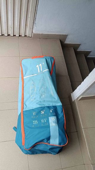Tabla de paddle surf hinchable de 11 pies en perfecto estado. Incluye bolsa de transporte. - Medidas: 11' (335.5 cm) x 34" (86.5 cm) x 6" (15 cm) - Volumen: 335 litros - Peso máximo soportado: 10.5" (23 lb) - Presión máxima: 15 psi (1.05 bar)